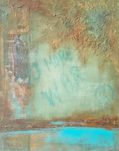 2023Gemengde techniek: collage, structuur, acrylverf oliepastelkrijt op canvas, gefixeerd