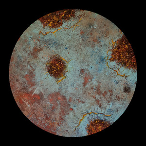 2023Rond acrylverf schilderij met structuur op canvasdoek met een doorsnede van 40 cm.